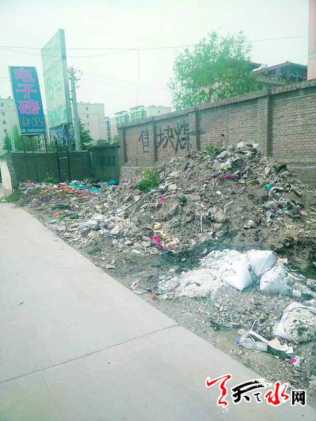 4月22日,麦积区桥南天辰花园小区2号楼住户谢先生致电天水晚报生活热线反映说,在2号楼的南侧有一片空地,里面堆满了建筑和生活垃圾。现在天气渐热,这堆垃圾散发出的气味实在是难闻,熏得楼上的住户都不敢开窗户,对居民的生活产生了很大影响,希望建筑垃圾的遗留单位能尽快清理这堆垃圾。