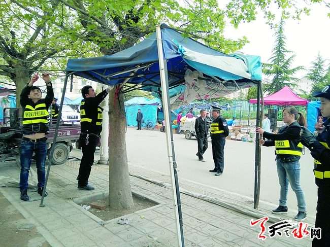 天天天水网讯【记者 闫蓉芳】为彻底解决市民反映的天河小区巷道拥堵问题,秦州区综合执法局七里墩中队经过实地了解,发现巷道两侧有很多破烂不堪、无顶也无人经营的帐篷,占了道路不说,还严重影响市容市貌,对此,中队对两侧占道帐篷开展集中整治。经过队员耐心宣传引导,部分商贩主动拆除了帐篷,但仍有少数破烂帐篷存在。4月19日上午,执法人员对拒不拆除、无人管理的破烂帐篷依法进行了拆除,整治中共拆除帐篷8顶,巷道畅通了许多。(图片由通讯员周美林提供)