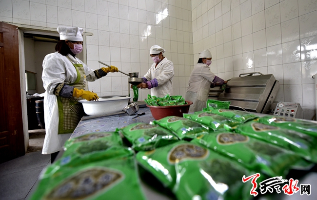 说干就干,一开始就在自家出售,一段时间后,这种零散的销售方式,根本无法满足村民的需要,经过与家人合计,杨应生决定让自家的酸菜进入更大的市场,2012年,他成立了自己的公司——天水市齐寿香食品有限公司,从收购食材到加工制作,杨应生从一个普通的农民转变为一个在市场经济浪潮中搏击的创业人,目前,在他的公司里打工的本村村民已有10名,去年生产酸菜10余万袋,年销售额达10多万元,“生产规模还是太小,今年有一兰州客商慕名而来,说让我把目前生产的货全部发给他,并要求签定每月1500件的供货合同。”这对于杨应生来说,无疑是一件让他兴奋的好事,但他还是婉言谢绝了,用他的话说,不能忘掉在他们创市场时帮助扶持过他们的人。