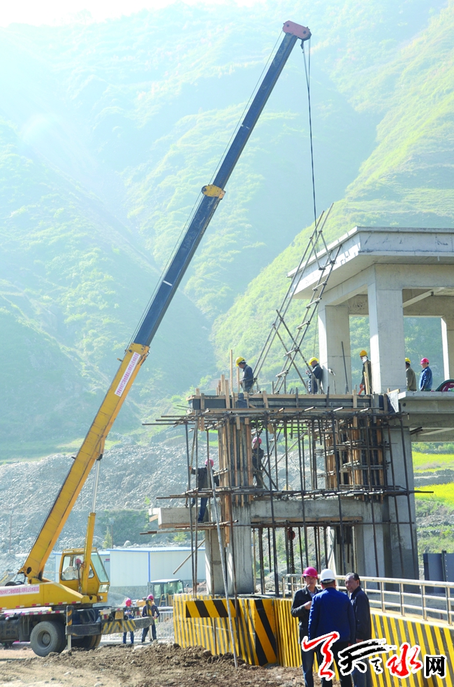 4月27日,天水市城区引洮供水高桥头引水枢纽工程项目现场,工人们正在紧张施工。据了解,天水市城区引洮供水工程是市政府与省水投公司合作的全省第一个采用市场化融资模式运作的重大水资源配置项目,属省列重点建设项目。目前,该项目控制性工程2号引水隧道已完成掘进6.02公里,秦州段22公里管道基本完成主体工程,杨家湾调蓄水池弃渣场确定后已全面开工,武山县境内的4号-7号隧洞群已全部开工。(记者 辛磊 摄)