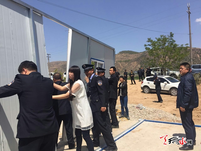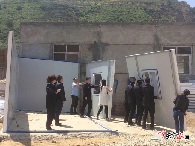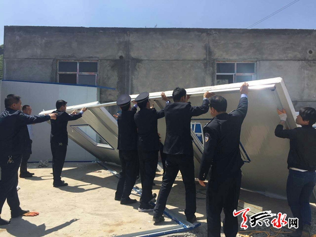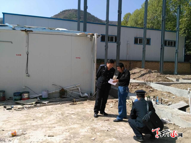 天天天水网讯【记者杨旭 通讯员胥燕】4月28日,秦州区执法局机动二中队联合太京镇政府,区国土资源局,对316国道太京段沿线私自搭建的一户彩钢房屋进行了强制拆除。