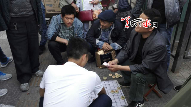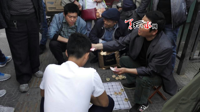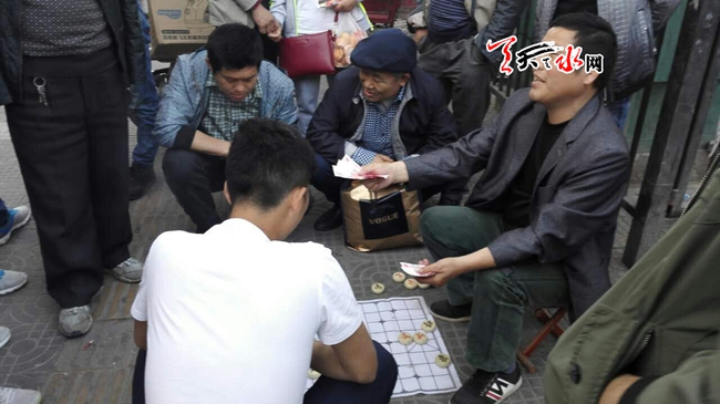 天天天水网29日10时讯【记者 杨旭 王明辉】斗方棋盘,演绎人生。当把象棋这种益智意趣的民间高雅艺术拿到街面上以残局设赌,令人不齿。