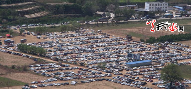 车辆整齐驶入临时停车场