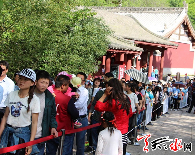 五一当天,景区首次突破单日接待游客10万人(次),旅游呈现出“自驾爆增,团队不减”的火爆势头。景区管委会、麦积区政府、公安、交警、运管、森林武警、工商等主要职能部门到各景区加强值守,搞好游客分流、交通引导、车辆调度等各项协调,确保了节日期间游客接待秩序井然,安全平稳。