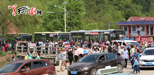 为了决战这个五一高峰,景区管委会提前一个月通过有效衔接,在峡门区域进行平整场地,划设标线,增设导览标牌,设置了大型临时转运停车场,可停放车辆2000多辆,在景区停车场饱和的情况下转运自驾车游客。天水大众公交公司投用了25辆公交车,在临时停车场和景区之间进行全力转运。