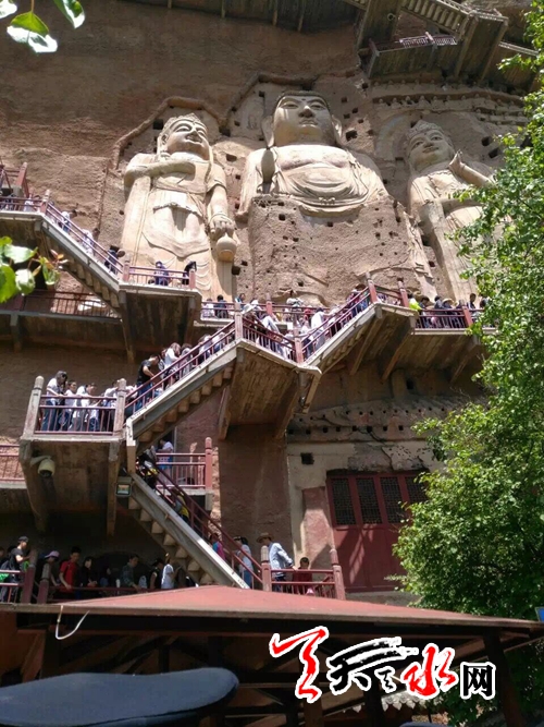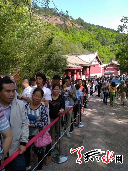 五一当天,阳光明媚,麦积山风景名胜区游人济济,登窟大门口排起了长龙。