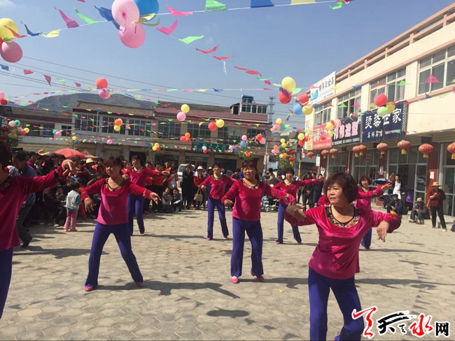 “五一”期间,秦安县叶堡镇健民文化广场上,十几支由附近村民自发组织的广场舞队伍为群众上演了一场文化大戏,精彩的表演赢得了阵阵掌声。近年来,叶堡镇高度注重文化建设,组建了多支文艺团队,多形式开展文艺活动,极大地丰富了群众的文化生活。(天水日报记者 胡丽霞 摄)