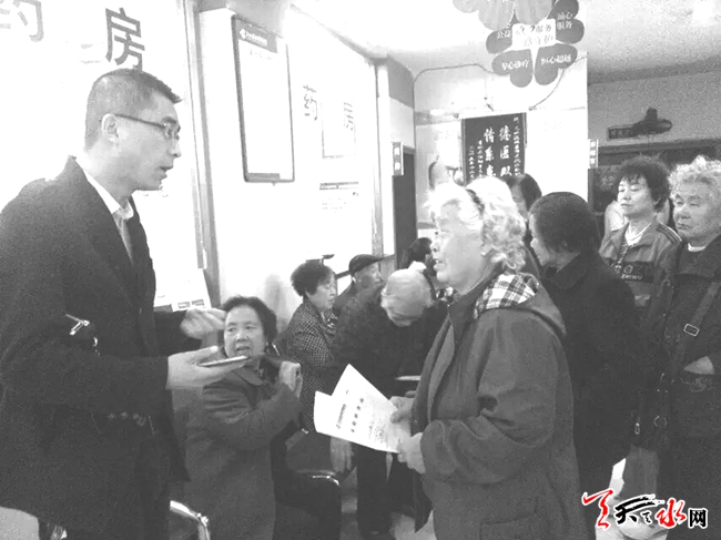 连日来,秦州区仁瑞福老年日间照料中心针对天水市部分社区空巢、孤寡、高龄百岁老人举办了名为“开心体检健康同行”的免费体检、健康咨询活动。图为中城街道办事处绿色市场社区一位老人咨询体检的相关事项。(天水日报记者 洪波 摄)
