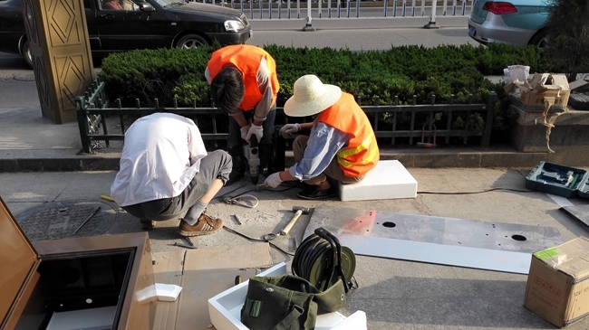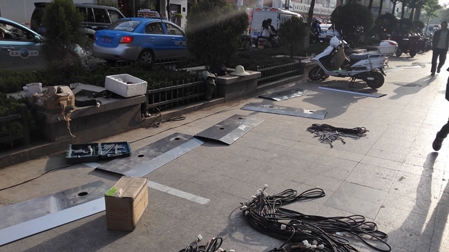 记者路过百货大楼时看到,此处的公共自行车站点建设也已经开始,工人们正在施工,安装设备。据了解,整个项目预计5月底完工,项目完成后将有效缓解城市交通压力,为广大市民出行提供便利!