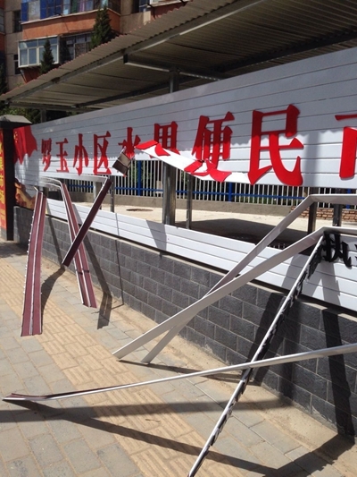据记者了解,由于罗玉小区集中整顿了蔬菜水果商贩在街道上摆摊设点的乱象,虽然让街道整洁不少,但是小区居民购买蔬果也颇感不便,为了解决这一现状,天水市城市建设中心和秦州区执法局在仔细研究后决定在区检察院后门前的一片空地上设置一个蔬果摊点以方便市民,但没想到的是刚刚建立起来的摊点围栏就被人破坏了。截止记者发稿时,破坏的围栏已经被修好了。