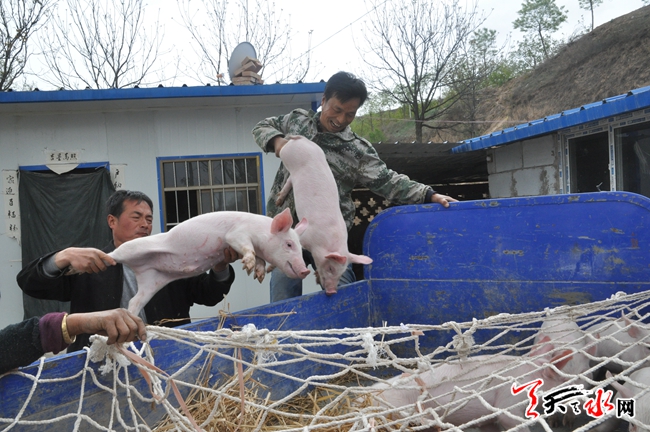 4月30日,麦积区花牛镇元柳村养殖户孙军喜(右一)正在入栏小猪仔。四月份他刚出栏成猪11头,收入20000多元。孙军喜去年申请了5万元的精准扶贫专项贷款后,新修了圈舍,现存栏生猪20头,另有四头母猪。孙军喜说,后半年母猪就能产猪娃了,现在市场上一个猪娃800多元,按一头母猪年产10个猪娃算,也能能省下不少买猪娃钱,他的利润会增加不少,日子也会越过越好。(天水日报记者 惠富强)