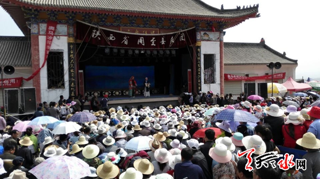 天天天水网5日17时讯【记者 张文都】5月2日,麦积区凤凰山第三十二届东岳文化庙会拉开大幕。作为文化系列活动之一的秦腔演出也如期精彩上演。5月5日,戏曲名剧《大登殿》作为秦腔演出的最后一场压轴大戏,慕名前来观看戏曲的群众如潮,异彩纷呈的大戏令观者如痴如醉,乐在其中。