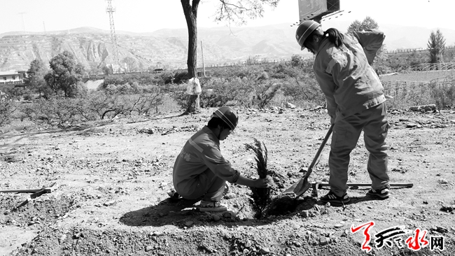 “五四”青年节当天,甘谷公路管理段组织全段青年职工来到国道316线鸡嘴山隧道公路西侧,开展以“共建绿色公路、同创和谐家园”为主题的植树活动,用实际行动为促进人与自然和谐发展贡献力量。参加植树活动的青年们或两人一组,或三五人搭档,有的用镐刨,有的用手搬,挖坑、扶苗、培土、压紧……共栽植了200株龙柏树苗。(记者 夏卉 通讯员 黄丽霞 摄)