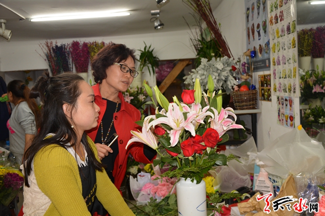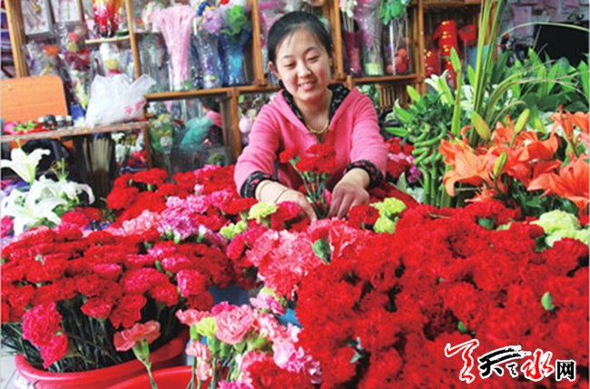 除了电话预定外,许多花店也都开通了网上和微信订花业务,价格和服务都跟门店一样。在关泉路一家花店里,柜台上赫然放着一个微信号的二维码。“我们有一部分客户是通过微信预定的,一般市内都是免费配送,还有一些甘谷、武山等县区的客户我们都是通过班车给他们捎过去。你只需选中自己喜欢的花束,将送花时间和地点告诉客服人员,就可以足不出户,把自己的心意传达到城市的任何一个地方。”该花店杜老板告诉记者,她家的康乃馨目前任然是4元1枝,母亲节当天会涨到5元1枝。一般母亲节当天康乃馨的销售量是平常的两倍。