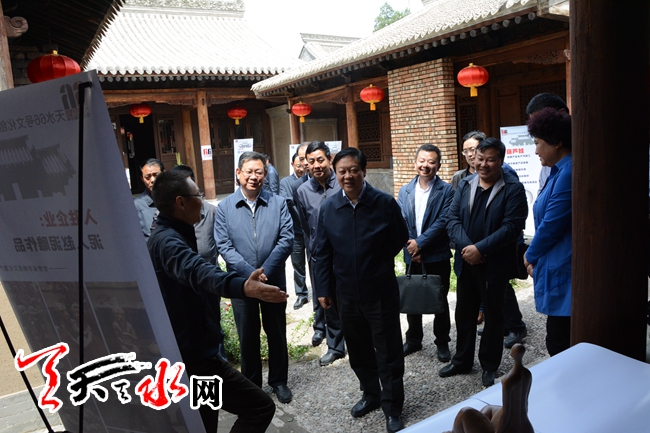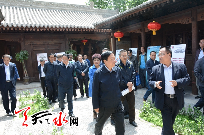 天天天水网5月8日讯 【记者 杨晓斌】 5月8日下午,市长杨维俊一行在调研我市众创空间发展状况时参观了位于秦州区区政府西侧的、由我市一家文化公司投资保护开发的贾家公馆。