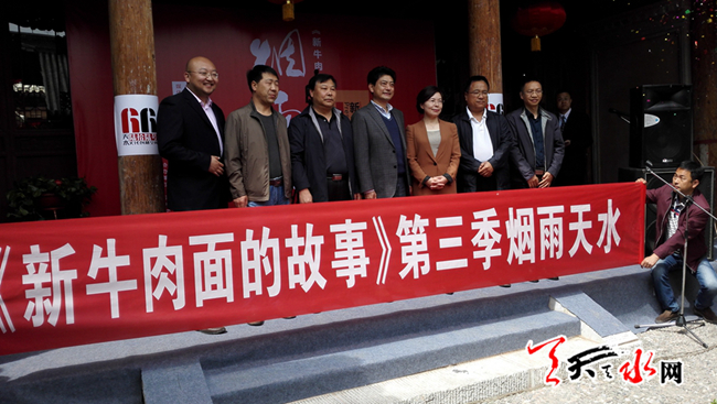天天天水网讯【记者杨璟】5月7日,《新牛肉面的故事》第三季《烟雨天水》开机新闻发布会在我市贾家公馆举行。