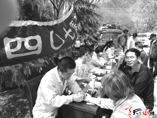 天水四零七医院义诊队的9名医务人员日前赴渗金山公园,利用当地庙会活动为老百姓开展义诊活动,除为群众提供一些常规检查外,还向他们发放了健康宣传卡。(靳永泉 摄)
