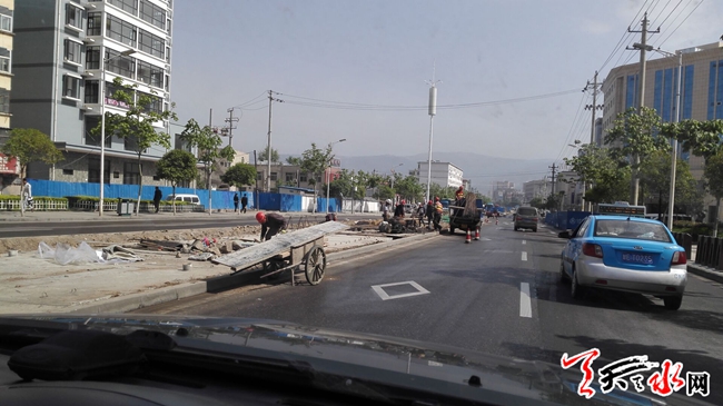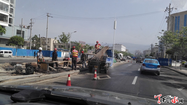 天天天水网9日14时讯 【记者 杨晓斌】5月9日,记者路过麦积区埠南路时看到,曾经横亘在埠南路中间的臭水沟正在被全部封盖,臭水沟封盖工程已接近尾声,其余辅助工程正在加紧建设中。臭水沟封盖后污水将从水泥盖板底下的暗槽中排放,今后行走在埠南路将不会再受污水沟中难闻气味的干扰。
