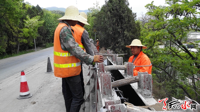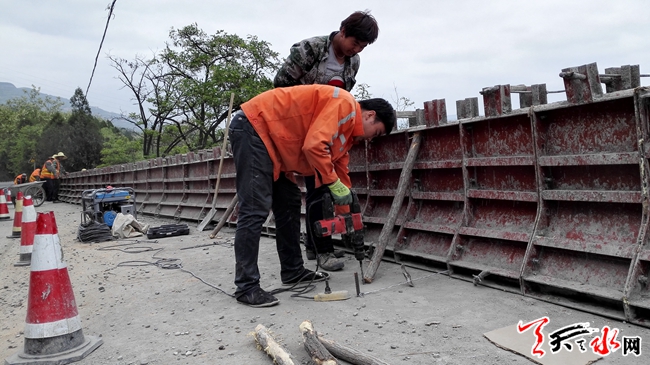 5月8日,工人们正在修筑省道207秦州区皇城山段防撞护栏。据悉,该工程4月开始动工的,将修筑从南河川、皇城村到秦州城区共10公里路段的防撞护栏,为行车安全提供保障。工程预计于伏羲文化节前完工。(天水日报记者 李雅春 摄)