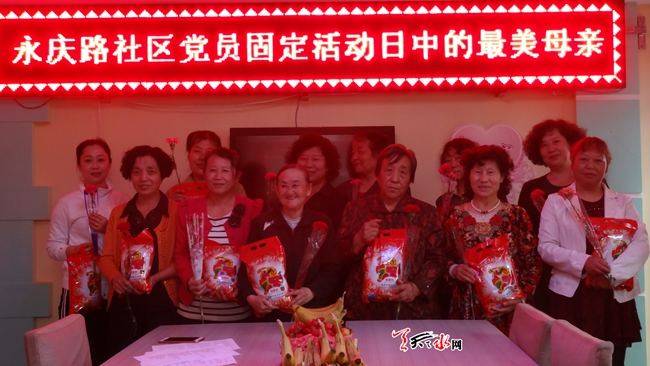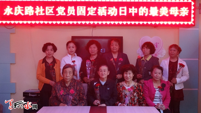 天天天水网讯 5月6日是永庆路社区第三个党员固定活动日,恰逢母亲节来临之际,社区在为期一个月的最美母亲的寻找过程中,找到了15位最美母亲。今天,我们为这15位最美母亲送上节日的祝福。