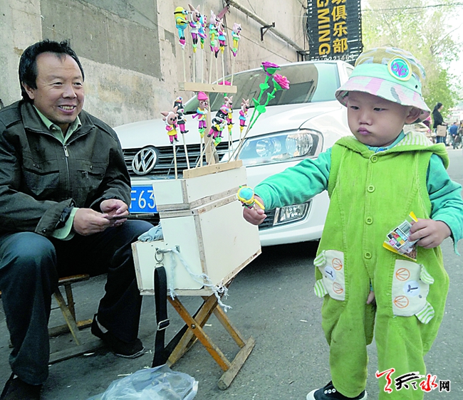 5月7日下午,在秦州区儿童乐园门前,一位捏面人的师傅制作了许多卡通面人玩偶出售。这些面人玩偶的造型有孙悟空、猪八戒、黑猫警长、机器猫,还有小女孩喜欢的玫瑰花等,售价每个5元。由于面人玩偶生动可爱,很讨小朋友的喜爱,不时有路过的孩子上前围观。一位正在给孩子买面人玩偶的家长说:“这是传统手艺,我们小的时候还挺多见的,现在已经很少见了。”(天水晚报记者 雷佳/摄)