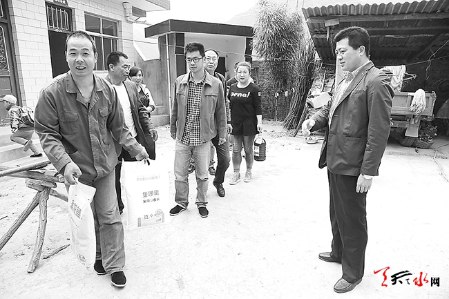 5月6日,麦积区地税局党委所属7个支部的12名党员到麦积区元龙镇佃儿下村参加地税党员与联系村党员“结对共建助发展”启动仪式,并慰问了村上6户贫困家庭。(乔理 摄)