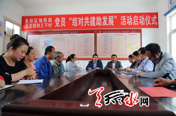 这标志着为期一年的该局党员与联系扶贫村党员“结对共建助发展”活动正式启动。麦积地税局12名党员干部与佃儿下村12名党员成功结对,他们将在“两学一做”、基层党建、农村脱贫、发挥党员先锋模范作用方面开展互帮互学互助,在各自的岗位上争当“优秀共产党员”、“党员先锋号”和“致富能手”。 (乔理)