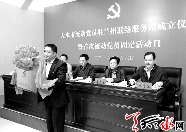 为加强对流动党员的管理服务工作,市委组织部依托市政府驻兰办,于5月6日在兰州麦积山宾馆成立了天水驻兰州流动党员联络服务站,标志着我市在兰州流动党员的教育管理进入一个新的发展水平。