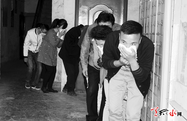 秦州区大城街道进步巷社区日前组织居民开展了消防演练活动。社区干部向居民详细讲解了在发生火灾后的基本扑救方法、如何在火灾中自救以及灭火器的正确使用方法等,并组织居民在秦苑小区进行了模拟火灾现场逃生演练及现场干粉灭火。(天水日报记者 周文涛 摄)