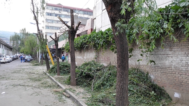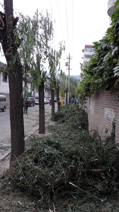 天天天水网11日18时讯【记者何永德】5月11下午6时多,记者路过友好路时,看到一排柳树己彻底“削发”,原来的风吹杨柳轻怫面的景象己荡然无存,据路人讲,“剪发”的目的是为了清除出行的视觉障碍,不过这手下得确实有点狠。