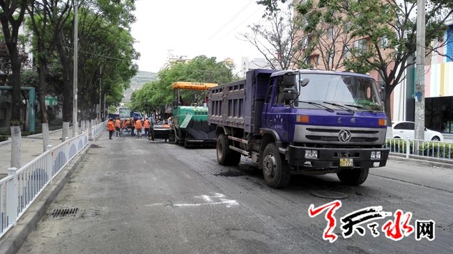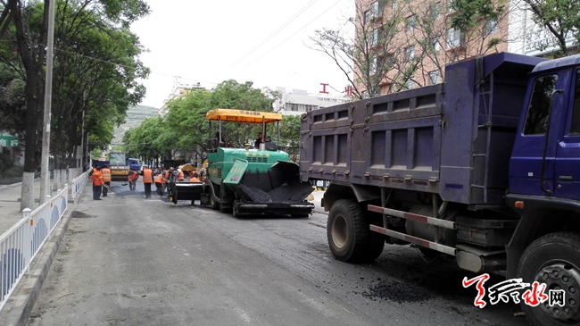 天天天水网12日14时讯 【记者 刘晓亚】5月12日,岷玉路南端封闭施工,近一段时间,市政部门对城区部分病害路面进行铲除和修补,为了不影响施工进程,为了不造成不必要的损失,施工方对施工路段进行了封闭。12日在岷玉路进行封闭施工。天天天水网提醒广大司机朋友和市民请绕行。