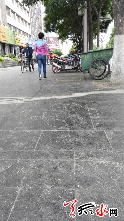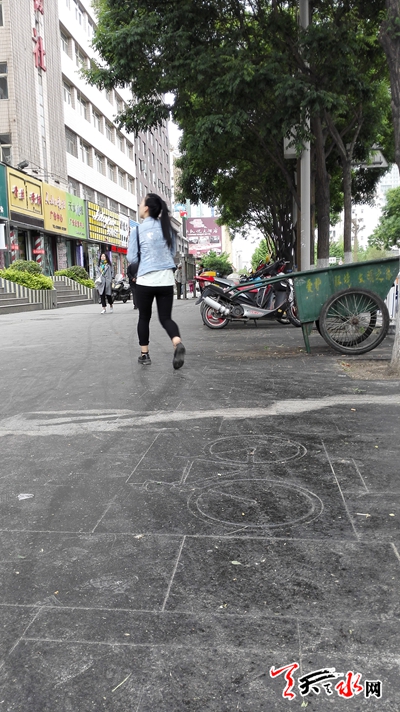 记者在秦州区藉河路、民主路等地看到,特别是国槐这种行道树受到蚜虫侵害严重,这些树冠下面的街面上,被黑乎乎的“胶水”所覆盖,一些行人怕黏液掉落身上,只好绕道而行。