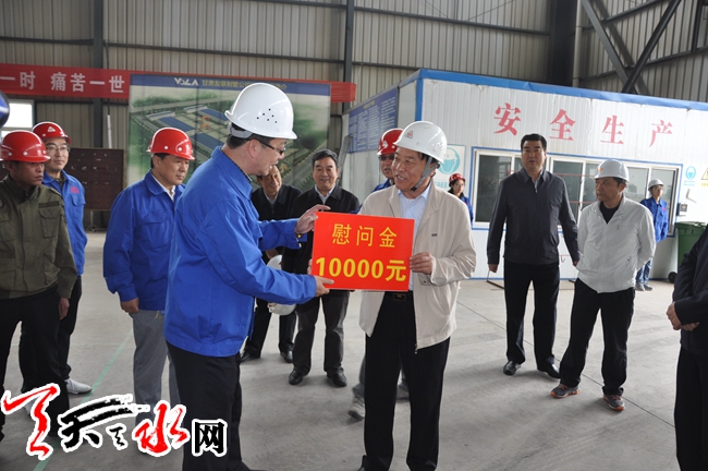 天天天水网14日17时讯【记者 杨璟】5月15日是第二十六次全国助残日。14日上午,市人大常委会副主任王子生,副市长张建杰,市政协副主席刘永年带领相关部门负责人走访了部分残疾人服务机构,看望慰问了部分残疾人,向他们送上了节日的问候和祝福,将党和政府的关爱送到了他们心中。