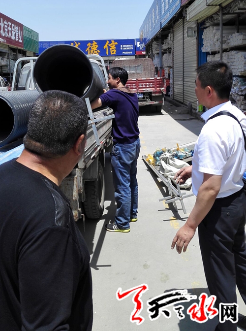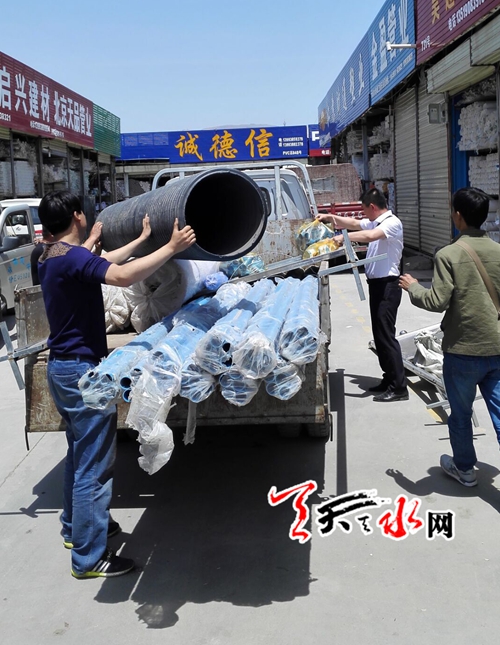 天天天水网16日13时讯 【记者 杨晓斌】5月16日,记者了解到,天水市鱼业站在给我市的规模化鱼业养殖户发放全国正在推广的池塘鱼菜生态循环养殖技术所需的蔬菜种植设施。