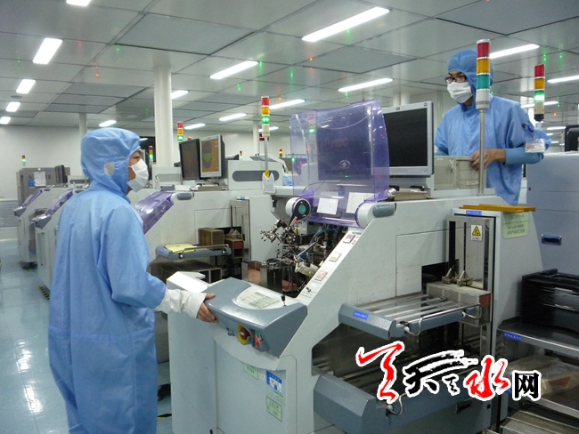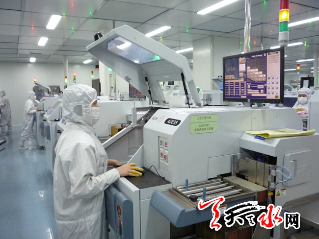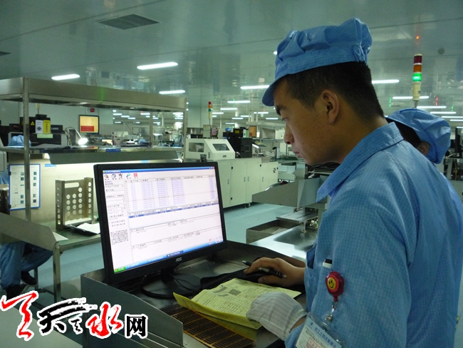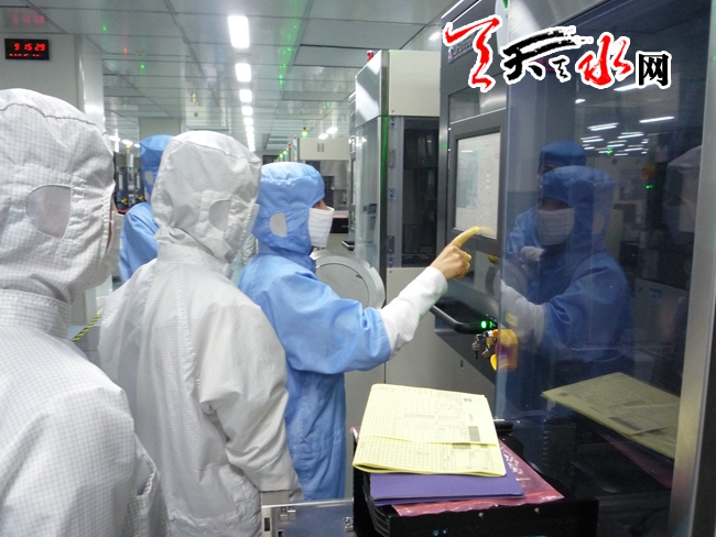 天天天水网17日20时讯【记者蔚军平 冯丽娟】5月17日,记者来到位于秦州区西十里的天水华天电子集团股份有限公司,走进生产车间,工人们在一台台设备前来回走动紧张工作着。