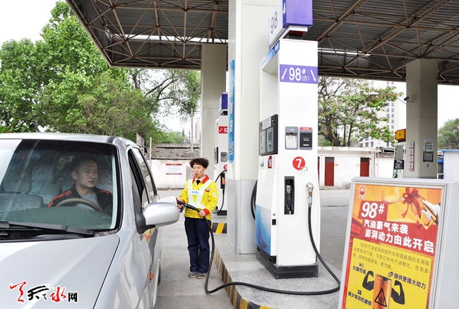 天天天水网讯【记者 李旺旺 通讯员 周成龙】5月17日,记者在中石油天水销售分公司岷山加油站看到,该站内新设了98号汽油加油点,不少车主正在为车加98号汽油。据悉,98号汽油是天水地区能源家族首次出现的新成员,让许多客户感到新奇。