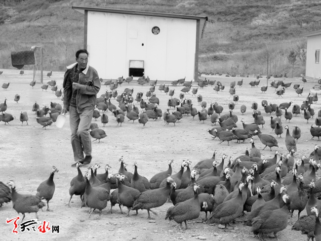 天水罗成农业综合开发有限责任公司经理罗自生风趣地告诉记者,“珍珠鸡”不是很“老实”,由于它会飞得很高,他们不得不给“珍珠鸡”“散步”的区域加设了近2米高的网状护栏。借助罗台村坡大草多的自然优势,公司已经建成四个生态鸡舍,养殖“贵妃鸡”、“珍珠鸡”以及三黄鸡,每年生态养鸡出栏5.8万只,年销售收入300万。目前,公司养殖的“珍珠鸡”、“贵妃鸡”等主要销往兰州、天水等地,每只价格在130元左右。