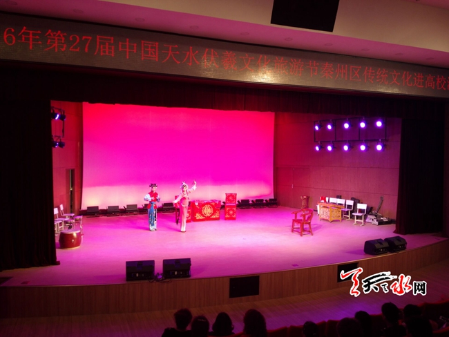 天天天水网讯(见习记者张小龙)5月18日晚,由秦州区文广局、天水师院主办,秦州区文化馆、天水师院舞蹈学院承办的秦州区传统文化进高校活动在天水师院音乐厅隆重举行,来自我市部分文艺工作者及天水师院师生共同观看了精彩的演出活动。