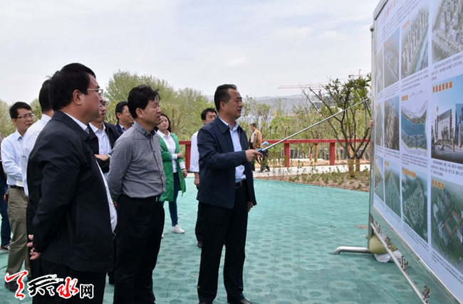 两天来,张明泰一行先后深入秦州区高桥头水库、藉河水厂、秦州大道,麦积区马跑泉公园、天水花牛苹果产业园以及秦安陇丰生态农业循环园、秦安南小河综合治理工程等重大项目建设现场,就项目规划、建设进度及存在的困难和问题进行了详细察看了解,并提出了指导性意见。