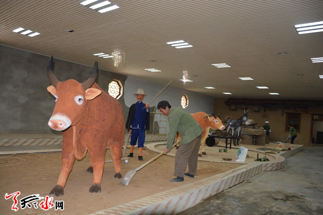 5月17日,在秦州区平南镇王坡村,秦州农耕文化博物馆工程正在加紧建设中。该博物馆主要以展现天水传统农耕文化为主,真实还原了牛犁地、驴拉磨、土蜂窝、磨豆腐等场景,具有非常重要的历史传承意义,该工程将在本月底建设完成。(天水日报记者 王雪梅 何慧娟 摄)