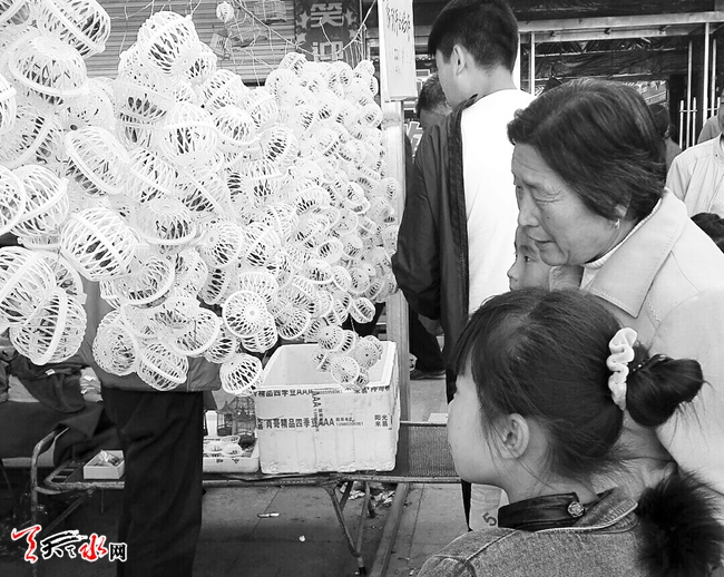 5月15日,一群蝈蝈叫欢了秦州区坚家河花鸟市场,吸引得不少市民围观购买。(天水日报记者 邵兰霞 摄)