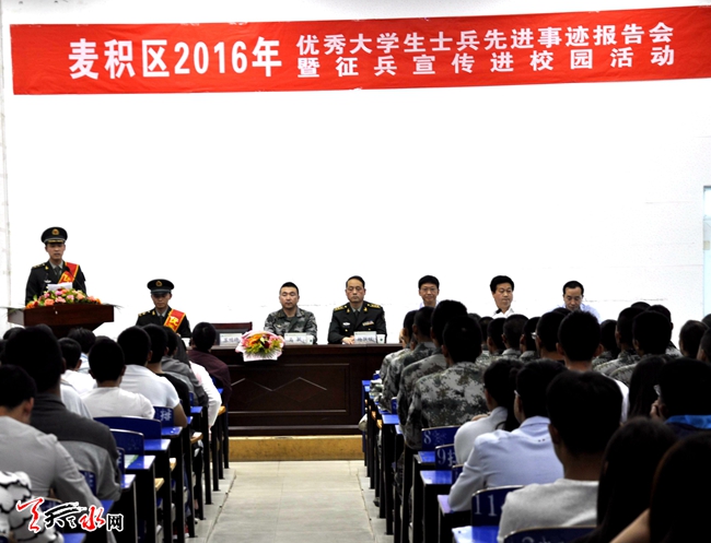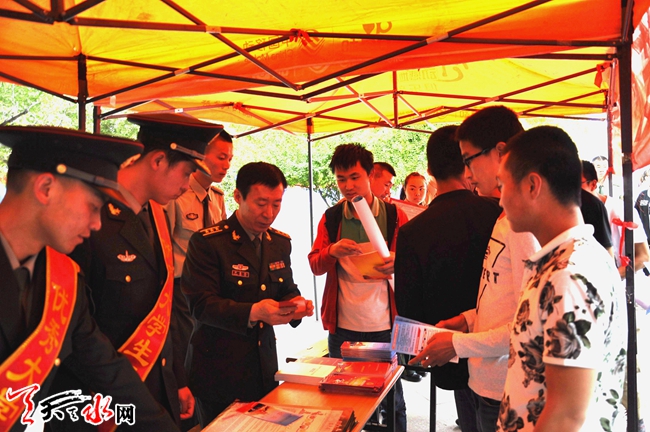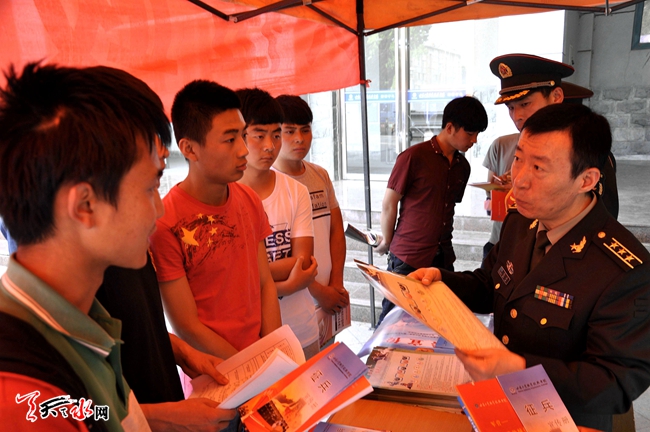 为做好今年夏秋季大学生征兵工作,连日来,麦积区人武部官兵走进省林业职业技术学院、省工业职业技术学院宣传征兵政策,鼓励广大适龄学生应征入伍。在现场征兵宣传咨询点,大学生踊跃询问,参军热情高涨,并向学生发放《征兵宣传册》。今年天水市夏季征兵宣传工作已全面展开。