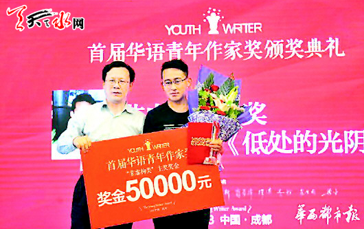 天天天水网讯【记者胡晓宜】由《青年作家》杂志社、华西都市报社联合打造的“首届华语青年作家奖”颁奖典礼,2016年5月23日上午九点半,在成都都江堰隆重举行,我市作家王选以9662字作品《低处的光阴》获得“非虚构”大奖,奖金达五万元。