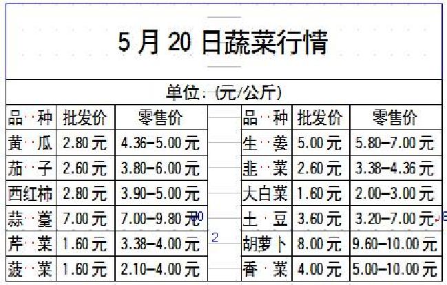 走访中,记者了解到,上周我市大多菜品的零售价“稳”字当头。来自天水瀛池果菜批发市场的统计数据显示:和5月13日相比,20日,蔬菜的批发价有跌有涨。其中,黄瓜、生姜保持平稳,茄子、西红柿、蒜薹、芹菜、菠菜、大白菜和香菜的批发价降了,韭菜、土豆和胡萝卜的批发价涨了。从零售价来看,上述菜品中,茄子、蒜薹的零售价降了,韭菜、胡萝卜的零售价涨了,其他菜品保持平稳。