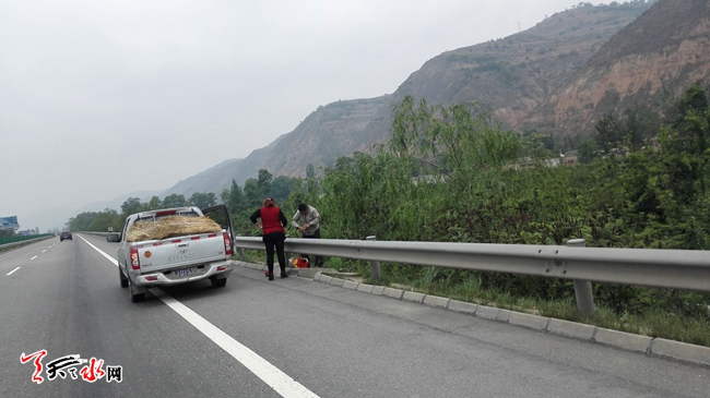5月20日上午,记者在天定高速窝驼段沿线看到,果农们拿着樱桃招手叫卖,吸引了不少过路车辆停车购买。记者在此提醒大家,在高速上交易,存在安全隐患。(天水日报记者 王雪梅 何慧娟 摄)