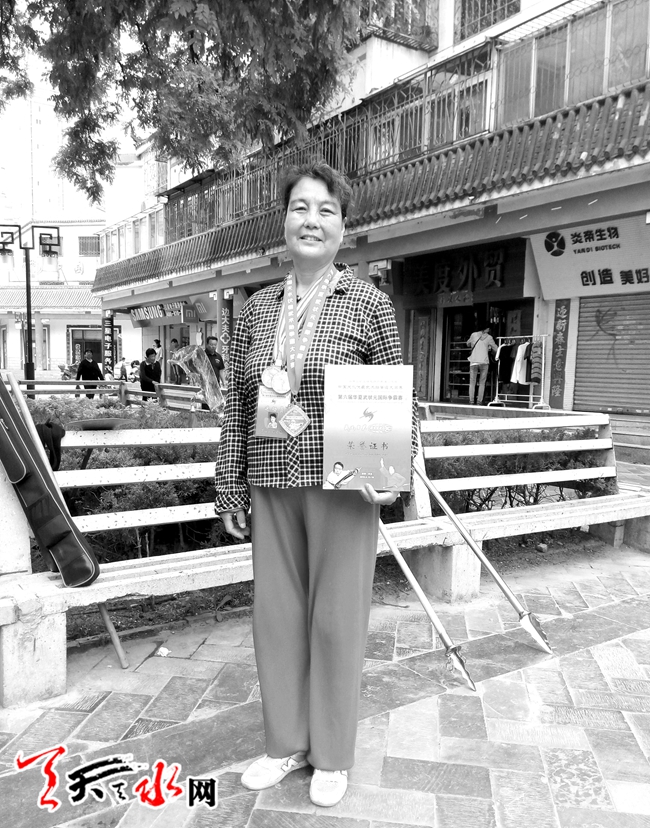由于王水花酷爱武术,她经常代表市、区参加各项武术比赛,获得了多项比赛的优秀奖,2015年代表天水市参加“中国天水伏羲武术跆拳道大奖赛第六届华夏武状元国际争霸赛”,王水花获得女子老年组大刀第一名的好成绩。几十年的练习中,因为她经过正规的训练,有喜爱武术的人看着看着就慢慢加入进来跟她练习,王水花也热心地给他们指导,教他们基本套路,她教过的人中有小至十几岁的少年,也有大到70多岁的老人,有不少人一直坚持锻炼,现在有的人功夫已经相当不错了。天水湖建成之前藉河边、河堤上就是他们这些武术爱好者的练功场,藉河改造后,他们又到人民公园、南坑体育场、市工会、玉泉观等处练功。时光荏苒,年岁增大,他们便选在离家较近的中华东路步行街习武了。