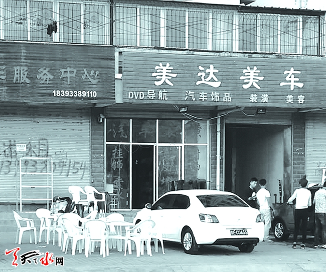 接到反映后,记者于当日20时左右来到反映地点。麦积区成纪大道东路北侧的鸿源小区是商住楼,一层是铺面,其中有一家名叫“美达美车”的洗车店。记者到现场的时候,店铺门口人行道上已经摆了两张塑料桌椅,桌上放着几瓶啤酒,由于天气尚早,还没有客人光顾。而在店铺门前的台阶处有一些被摞起来的桌椅还没有摆出来,三四辆车停在店铺门前,店铺工作人员正在洗车。随后记者走进小区了解情况,该小区只有一栋楼,分为7个单元,从正门进入后东侧分别是4—7单元,而该洗车铺就位于5、6单元的楼下。