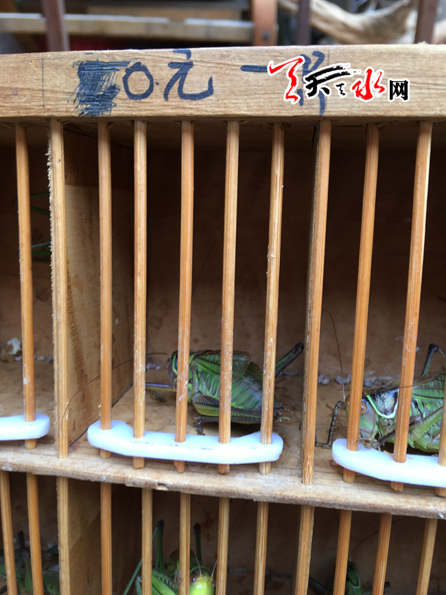 天天天水网25日17时讯 【记者 甄娜】 记者走进坚家河的花鸟市场,唧唧吱,唧唧吱的蛐蛐声大老远就听到,30元一只,50元一只,引人围观。不过,由于这些天天气凉气温不高,各家蛐蛐卖的没有去年同期好。