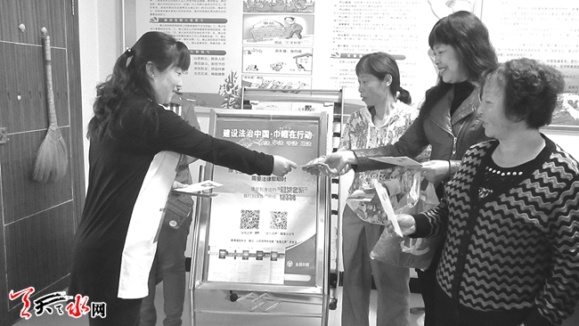 石马坪街道办石马坪社区日前开展了“建设法治中国 巾帼在行动”的主题活动。此次活动累计发放妇女维权法律知识包300份,妇女维权机构信息卡500张,为100多名妇女同胞进行了免费的法律咨询服务。(雷萌 摄)