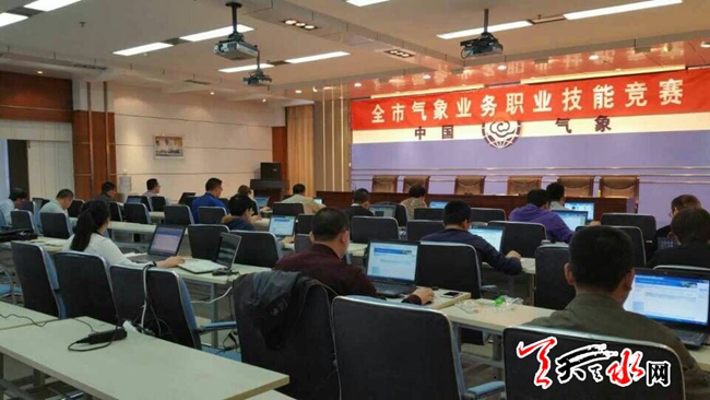 天天天水网27日11时讯【记者 张文都 】 5月27日,天水市气象业务职业技能竞赛进入激烈的决赛角逐中。来自市气象台、两区五县等系统的10个代表队37名选手争锋相对,你追我赶,激烈抢答,现场火药味十足。